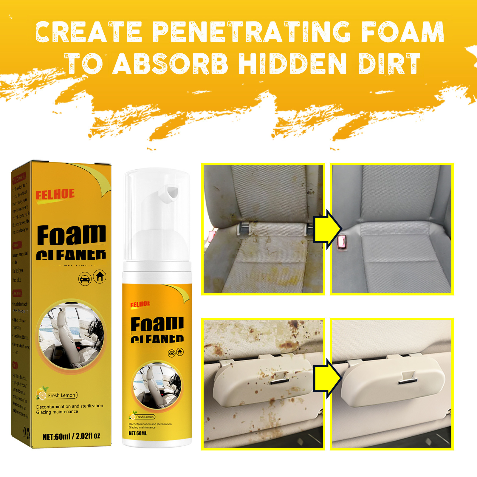 - Multi-functional Cleaner:EELHOE's multi-functional foam cleaner is a versatile solution for cleaning your car's interior, including genuine leather seat covers and steering wheel.